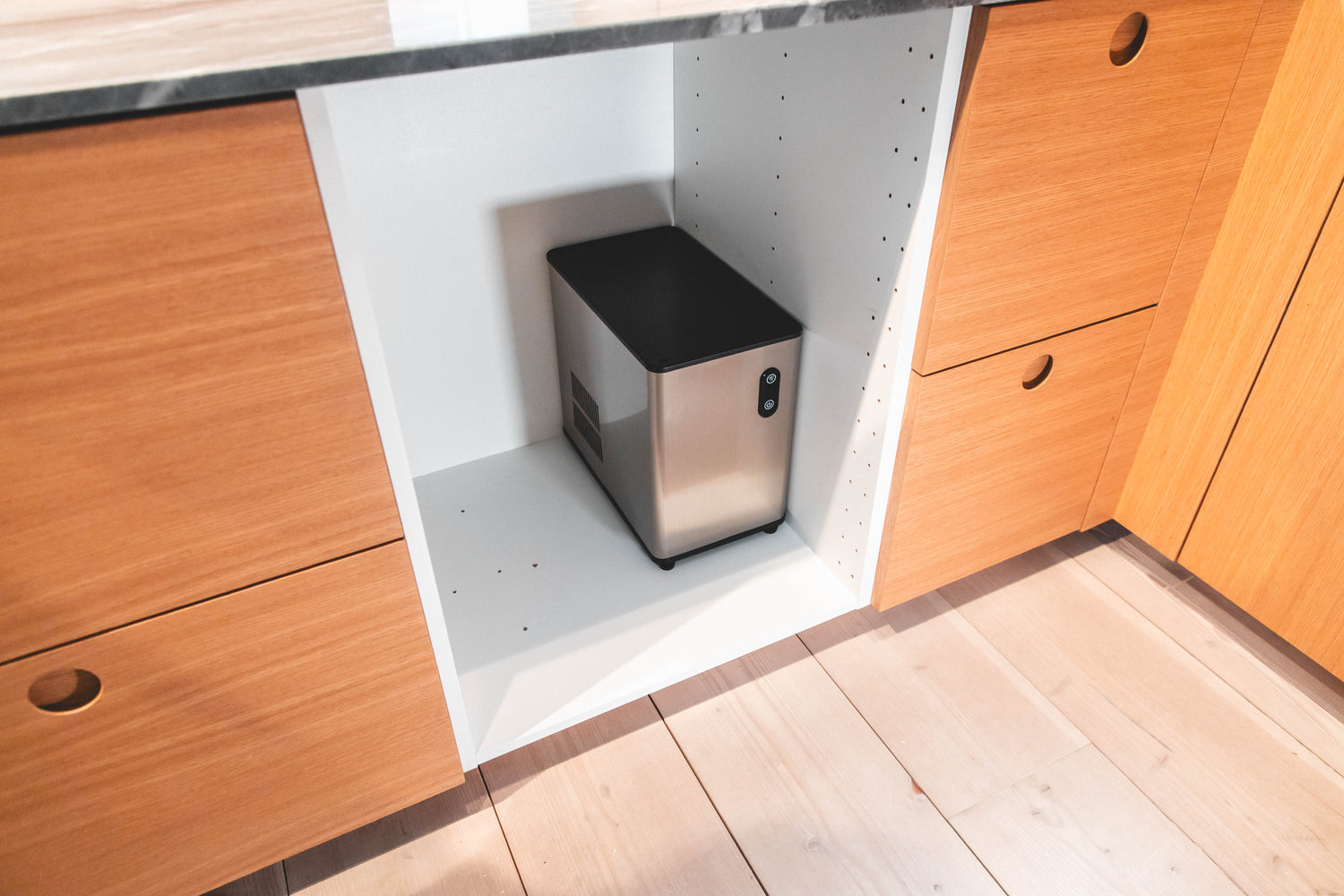 Målet har fra begyndelsen været at skabe en driftssikker og pladsbesparende løsning, som kan integreres i både små som store køkkener.
